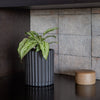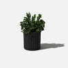 This Black Demi 6'' Planter features a stylish fluted design and includes a detachable tray to catch water runoff, making it ideal for both indoor and outdoor plants.