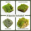 The Canadian Moss Variety Pack includes four popular live mosses: Canadian Forest Moss, Mood Moss, Lichen Moss, and Sphagnum Moss. Each 3" x 3" square brings its own texture, color, and character—together forming a 6" x 6" tray. Great for terrariums, moss bowls, bonsai, crafts, and natural decor.